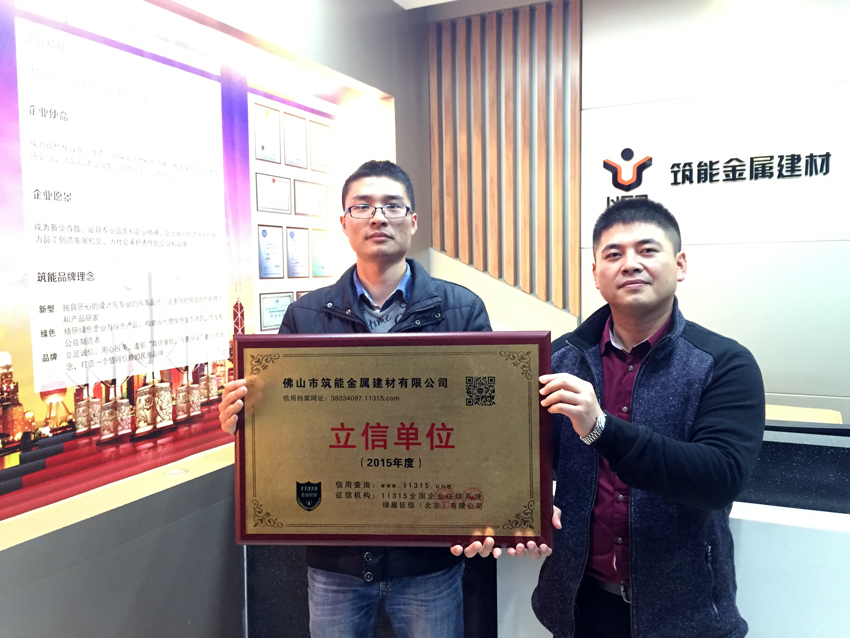 【筑能简讯】热列祝贺我公司被评为全国企业征信系统“2015年度立信单位”