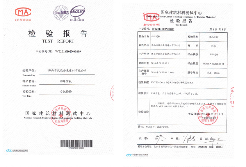 【筑能简讯】热烈祝贺“筑能”A1防火等级烤瓷铝单板通过国家检验合格