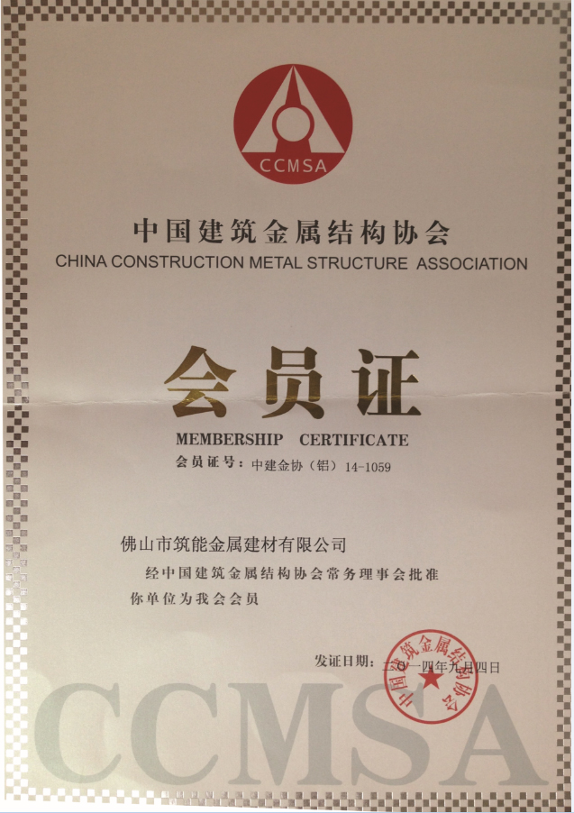 【筑能简讯】热烈祝贺我公司正式加入中国建筑金属结构协会