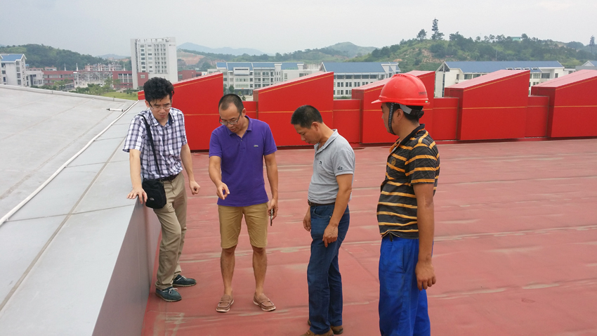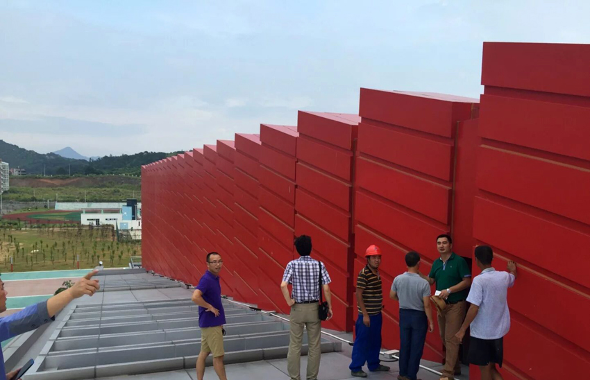 2015年8月12日,福建省建筑设计研究院平潭分院院长林经康、福建建工集团设计院幕墙设计所所长付智勇莅临宁德师范学院体育馆工地现场,对幕墙铝单板项目实地参观考察,并对我公司生产的“筑能”铝单板加工品质给予高度的认可与好评。