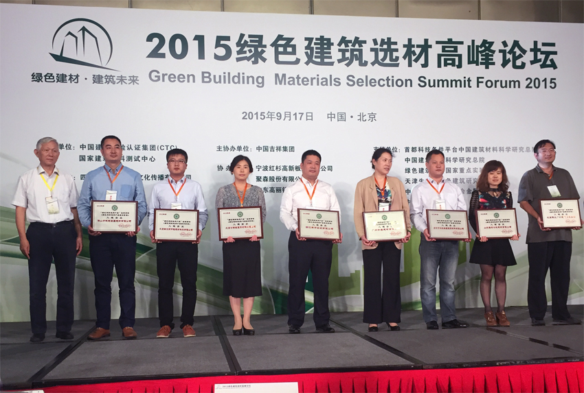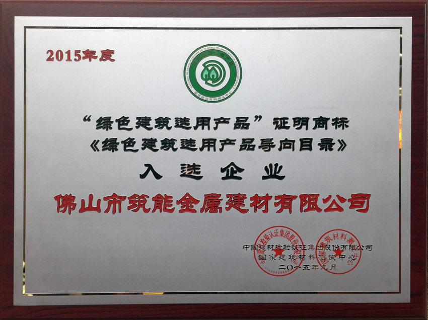 9月17日,由中国建材检验认证集团和国家 建筑材料测试中心主办的“2015绿色建筑选材高峰论坛”在北京新世纪日航饭店成功举办。论坛汇聚了来自绿色建材研发生产以及绿色建筑开发、设计和施工的各界代表300余位代表,其中包括100名以上的开发商和建筑师,多家知名媒体报道,多位专家进行权威论述,多家企业进行新产品展示。佛山市筑能金属建材有限公司作为2015年度“绿色建筑选用产品”入选企业,应邀出席并授牌。