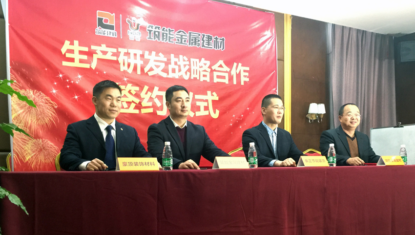 2016年2月,福建筑能建筑科技发展有限公司、佛山市筑能金属建材有限公司携手佛山市陆锋金属建材有限公司、佛山市秦正节能装饰材料有限公司、佛山市南海区豪顶装饰材料厂共同签订生产研发战略合作,建立行业联盟关系,整合资源强化合作,优势互补实现共赢,共同促进事业合作,推动行业发展,为“筑能”品牌金属建材提供强有力的技术、产品、服务、资源保障。