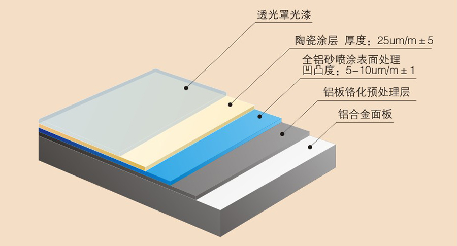 烤瓷铝板,采用先进的陶瓷涂料系统,是专为铝板外表面开发的无机涂料,以便发挥它奇特的功能。烤瓷铝板拥有优秀耐久性能、抗化学腐蚀性能和良好硬度以及绝对优异的防火、绝缘性能。因为其出色性能,因此它可以长久地经受日光曝晒、恶劣的天气、酸雨、潮湿环境、汽车尾气、工业污染物质等的侵害,油漆表现出容易清洁的特性。