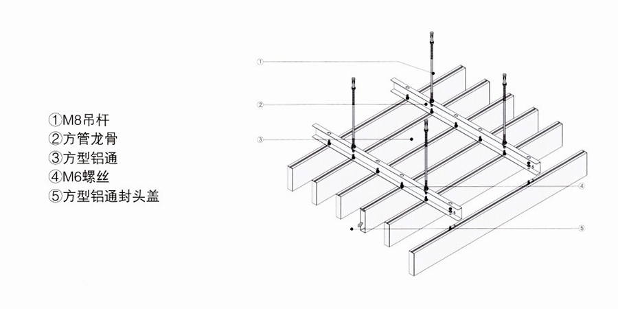 U型方管天花,极具方向性,通透开阔,立体感强烈,棱角线条清晰明朗,新颖独特。可调节装饰空间视觉高度,搭配各种不同颜色,悬挂不等高度,引入不同灯光效果,相益辉映,展现明快、飘逸、时尚、谐美的装饰风格。加以防风码安装结构,应用于室外装饰能有效防风,效果更鲜明。通透的安装方法,装拆简易快捷。