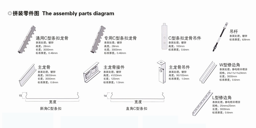安装简便灵活,配备数十种颜色使彩拼效果更具个性,为您的设计提供更多的构思。C型条口板有直边和斜边两种,最长可以生产8米,并可以定尺加工,铝板1001H24、3003H24国际标准。75mm、100mm、150mm、200mm、300mm宽的C型条扣天花可以随意拼装,没有缝隙,所有铝板紧密连接,铝板固定于龙骨扣齿上并可以单独拆卸。