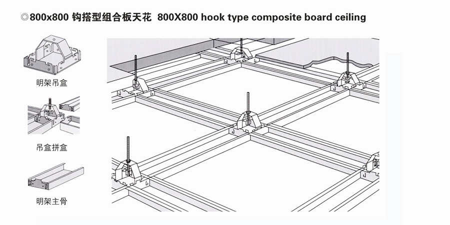 Board composition, with strong three-dimensional effects, fully reflect the ever-changing style and process characteristics of aluminum ceiling. Customers can be freely combined according to preferences, show a different style. Commonly used color is milky white, for other colors can refer to color card. Combined ceiling applicable to lobby, airport, subway, shopping malls and other places.